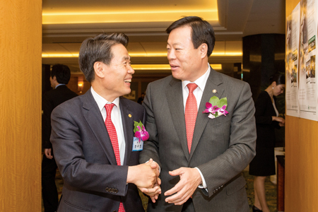 ▲ 정구정 회장과 제정부 법제처장, 추경호 기획재정부 차관이 담소하며 웃고 있다.