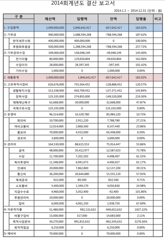 또한 회계감사에서도 목적사업준비금 및 운영비와 사무국관리비 등이 일체의 낭비 없이 사용됐으며 회계장부 및 모든 기록이 정확하게 남아, 운영상 아무 문제점이 없었다는 것을 확인했다.