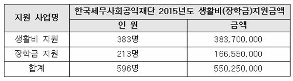 이어 재단은 이달 6일 한국세무사회공익재단 홈페이지에 2015년도 생활비와 장학금 지원대상자를 공식 공지했다.