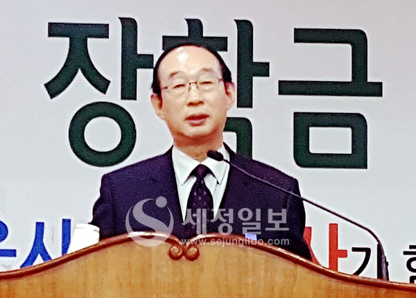 ▲ 12일 열린 한국세무사회 공익재단의 2017(제5회) 생활비 및 장학금 전달식에서 국제사랑재단 사무총장이 인사말을 하고 있다.