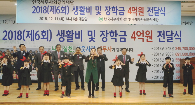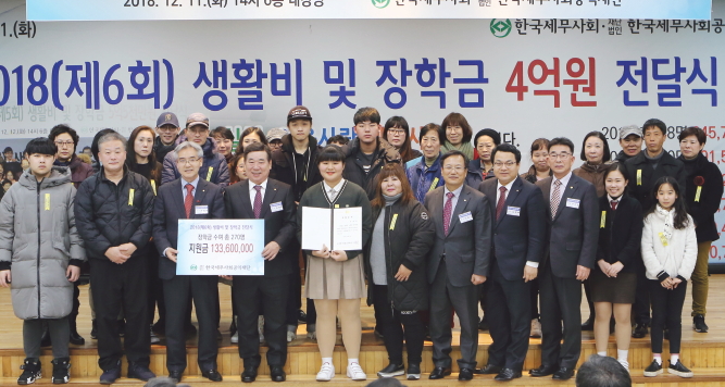 또, “어려울 때일수록 우리 이웃과 함께하기 위해 오늘 뜻깊고 의미 있는 2018년 생활비 및 장학금 전달식을 개최하게 됐으며, 6개 지방세무사회, 120개 지역세무사회로부터 추천받은 지원 대상자에게 지원금을 전달하게 된 것을 대단히 기쁘게 생각한다”면서 “어려운 여건 속에서도 좌절하지 않고 희망을 품고 생활해 다 함께 따뜻하고 밝은 세상을 만들어가자”고 덧붙였다.